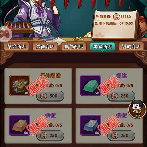 那获得的勇者点要怎么用,点开右上角的商店,里面可以购买天外陨石 银锭 铜锭 铁锭,
