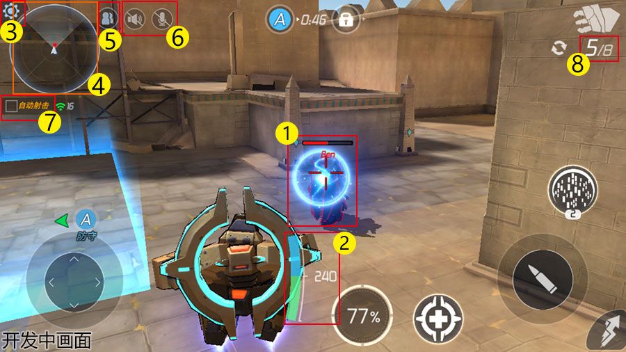 为了更清楚展示,这里介绍的是除机甲移动及技能以外的图标,机甲控制图标在上一个小标题。