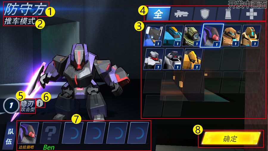 加载完成后,有一定时间选择机甲,选择完成并点击“确定”后,等待游戏开始。
