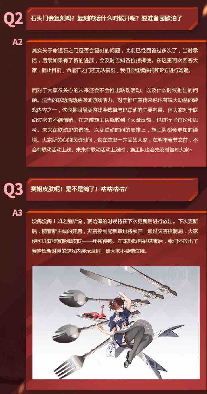 即使是国庆小长假,小鸽饲料站也没咕哦 ( ̄▽ ̄)/这次都督带来了指挥使们关心的赛哈姆皮肤、新主线和周年庆等问题,看看小鸽是如何回答的吧。除此之外,赛姐的新皮肤「秘密侍愿」也在本期首次展示!更多详情请戳本期饲料站——