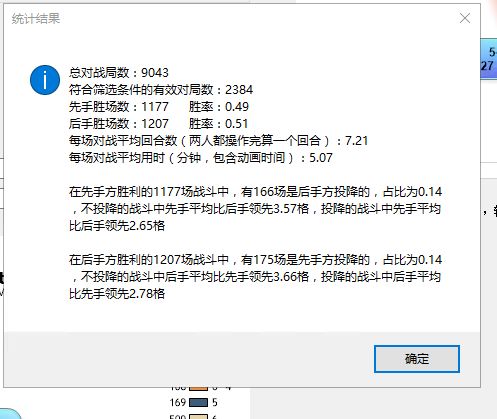 截止26日早上8:00,各位玩家进行了9000多场精彩的对战。平均每局用时5分钟,先后手胜率基本持平。这些对战数据和过程,以及大家的反馈和建议,将成为我们不断改进游戏的宝贵财富。在此,再次感谢您对我们的支持
