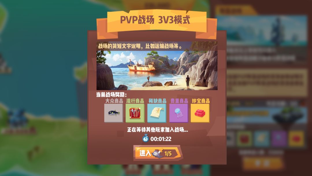 战场阵营目前规划有3V3战场和5V5战场,每种每日参与上限均为5次,匹配时可以查看当前战场可获得的奖励。