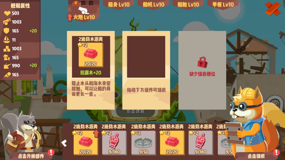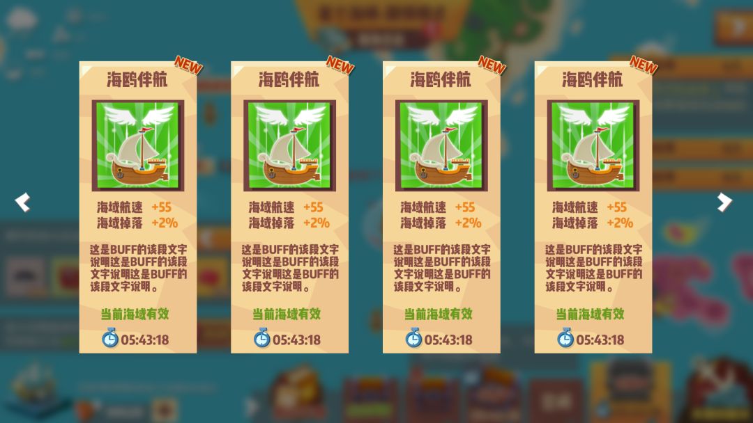 除了这两个内容外,我们也针对UI美术精细度不足的问题进行了优化,采用了最新的美术设计风格,重新设计了船长信息、部件升级和镶嵌、海域buff等界面。下面是优化之后的新界面,希望大家喜欢~