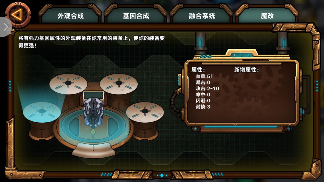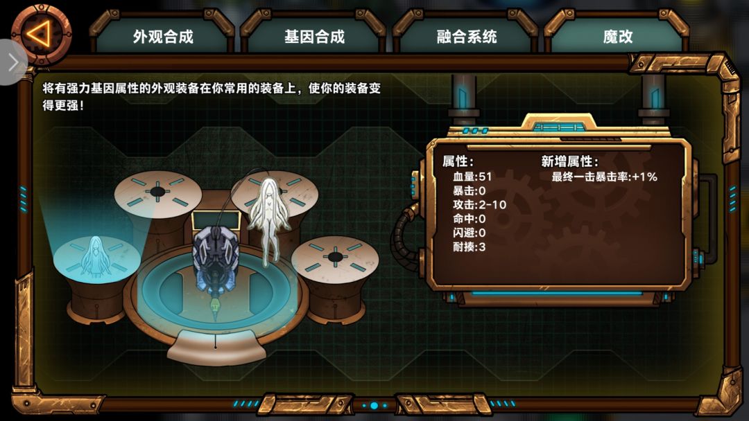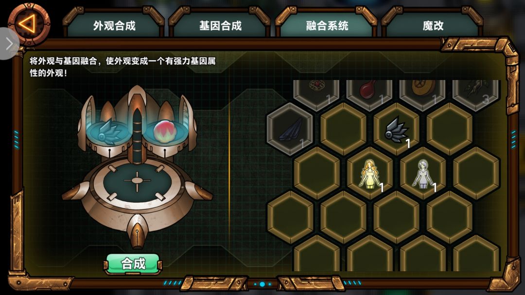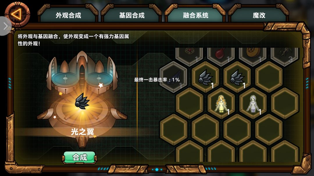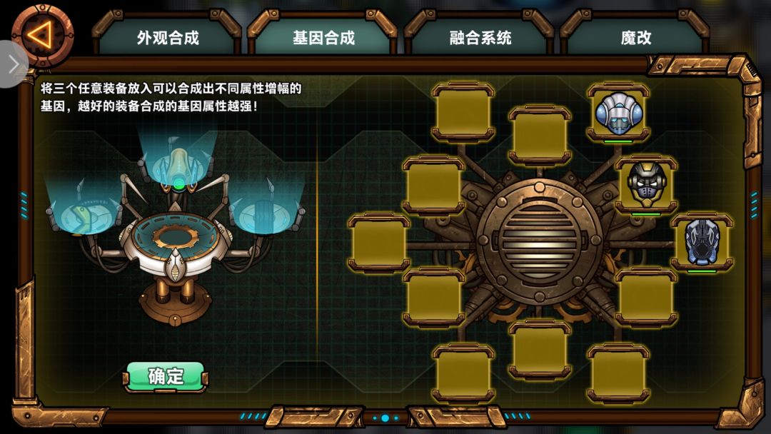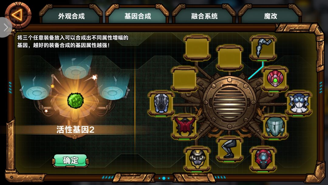 点击基因合成里,通过放入任意三个装备可以合成一个属性增幅的基因。