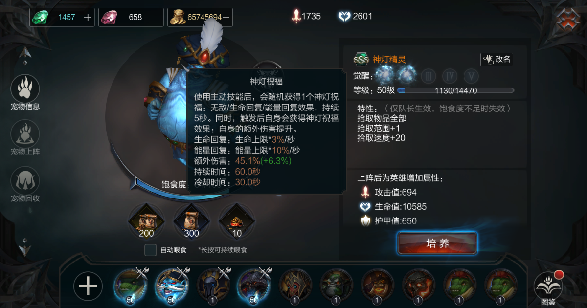 详解:宠物技能适合高频流派,这类型英雄技能输出频繁,随机效果中的无敌与能量回复可以为英雄提供持续性输出。额外伤害提升的效果持续时间长、冷却时间短,加上随机效果的特性,最为适合高频流派的英雄。