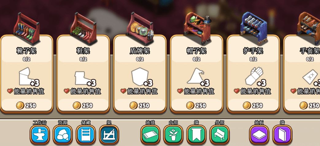这里就是你商店中,全部可以摆出来的东东啦~ 包括装饰,资源,储物箱,工作台~ 只记住一句话:这里是让商店不仅看起来牛逼,实际也很牛逼的功能区。