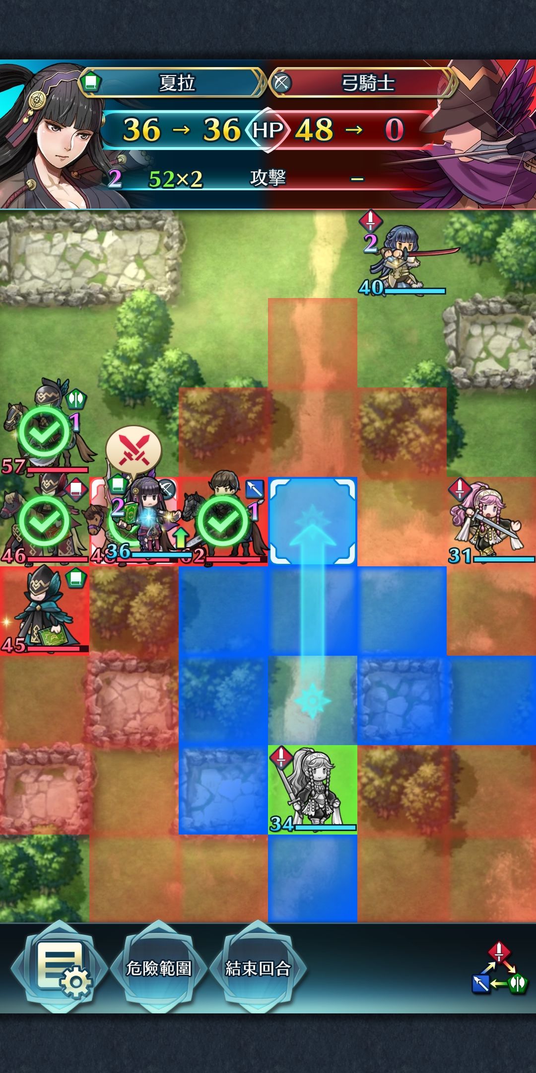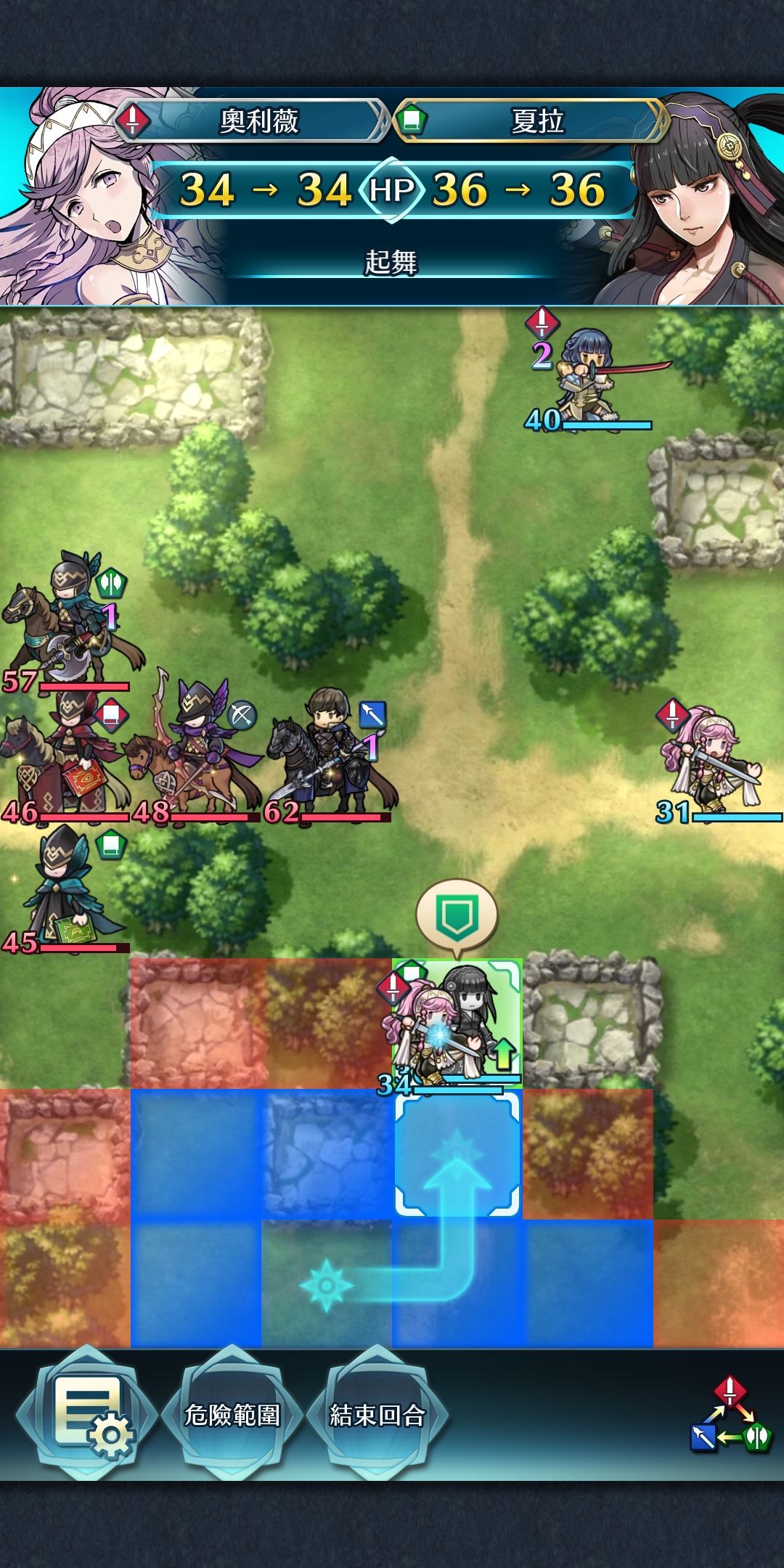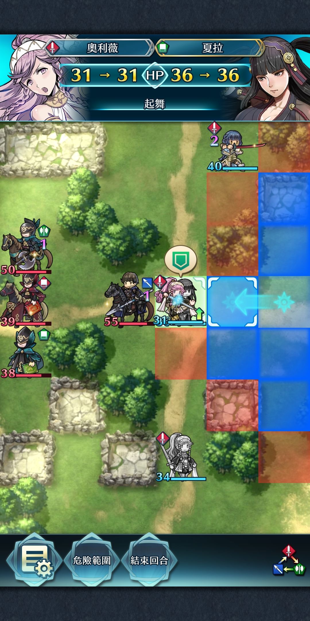 站位是这样的,用夏拉去打最下面的蓝色骑兵(必须要秒掉)