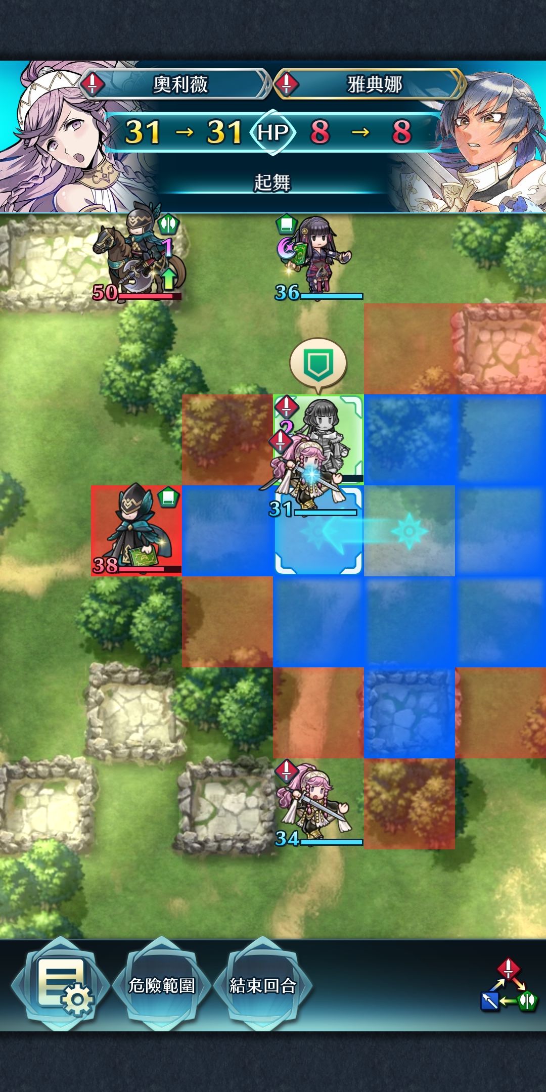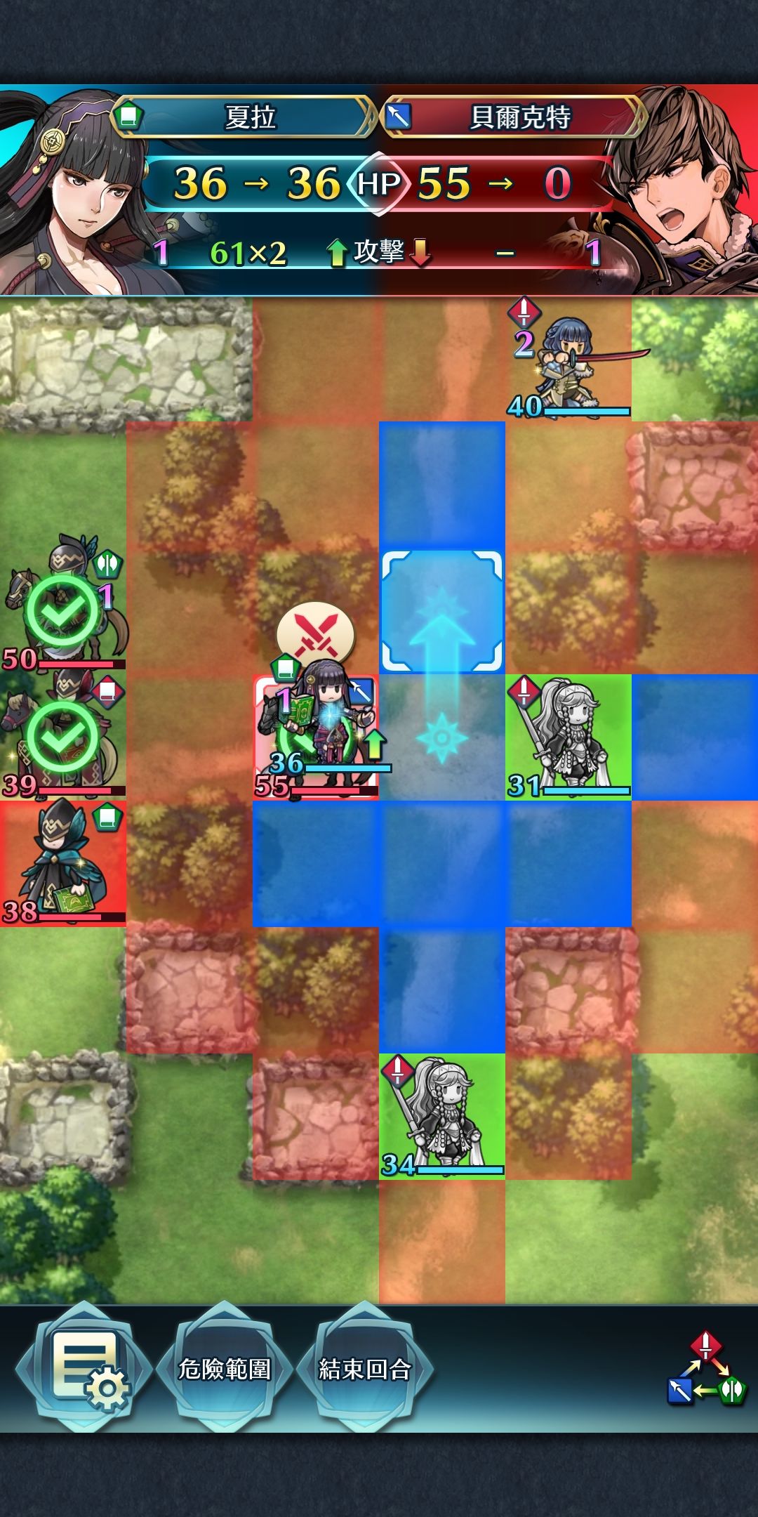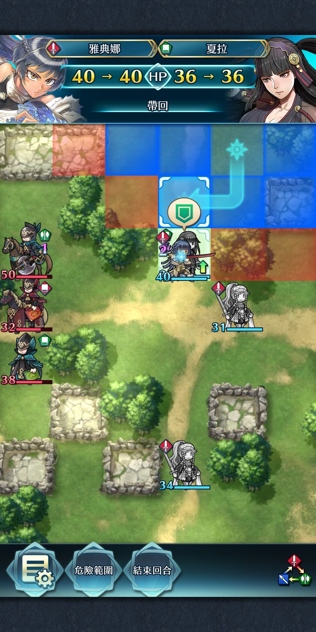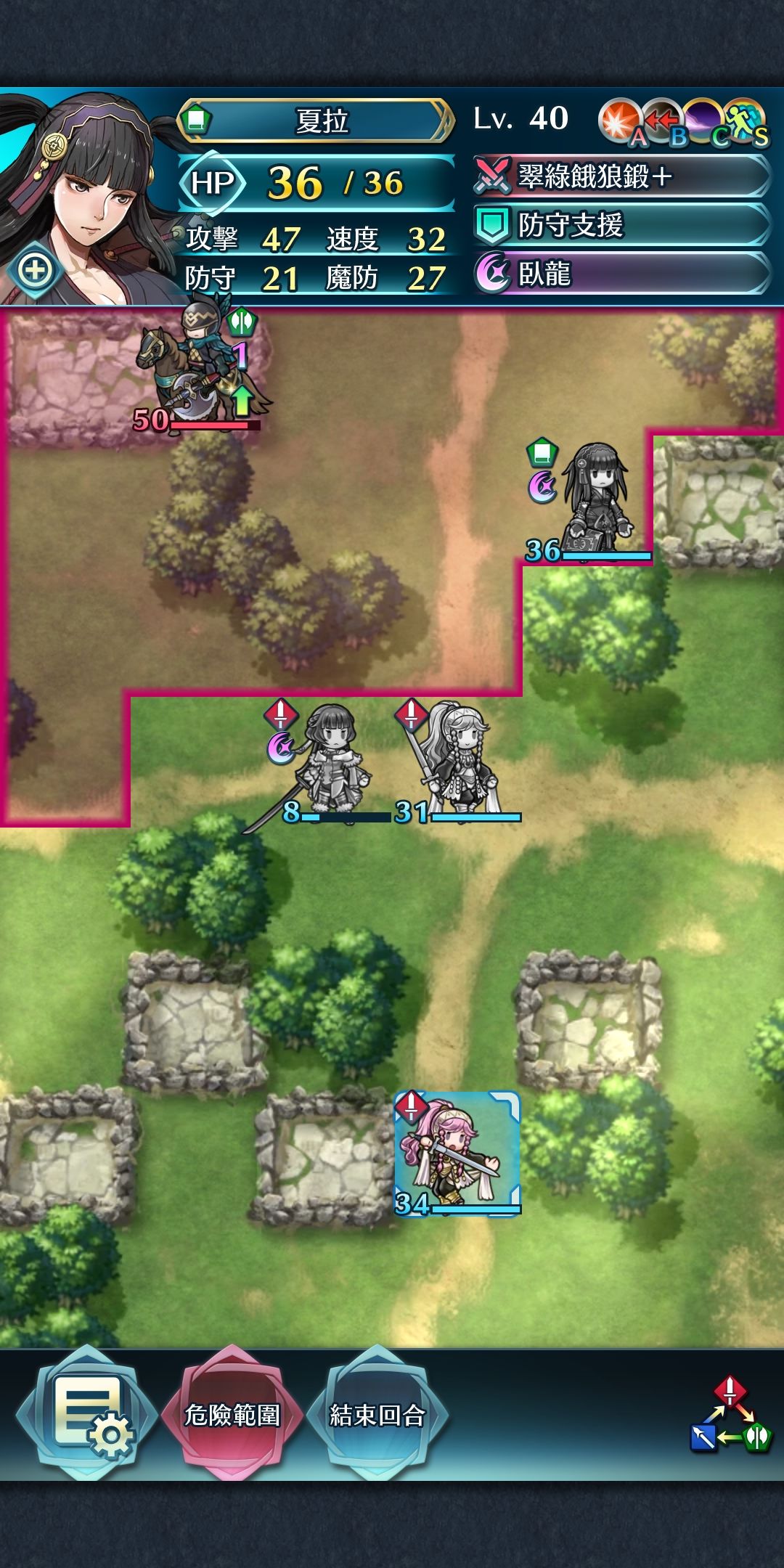 站位是这样的,用夏拉去打最下面的蓝色骑兵(必须要秒掉)