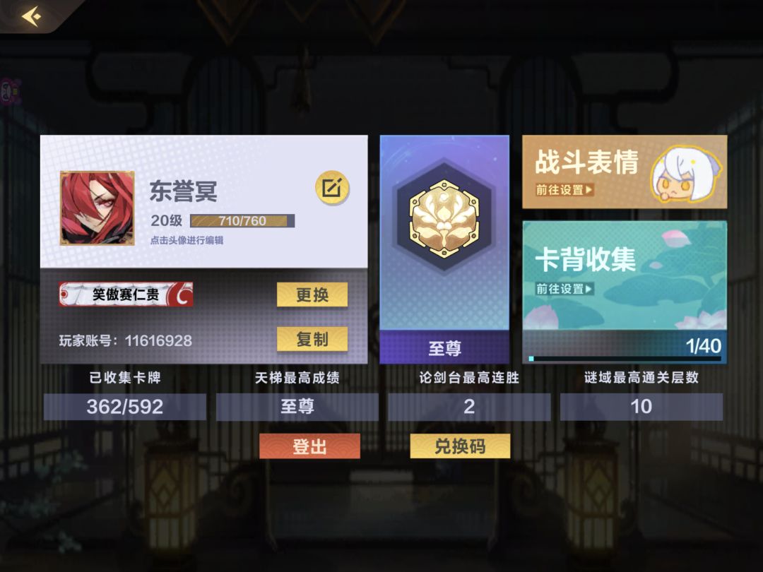 不打主线(只打了前五个教学关,奖励不足一包卡),不打前缘,不打论剑(打了2-0就没打了),不分解任何卡牌。资源非常有限,灵石全部开新包。从头到尾竟然只有一个食人树……