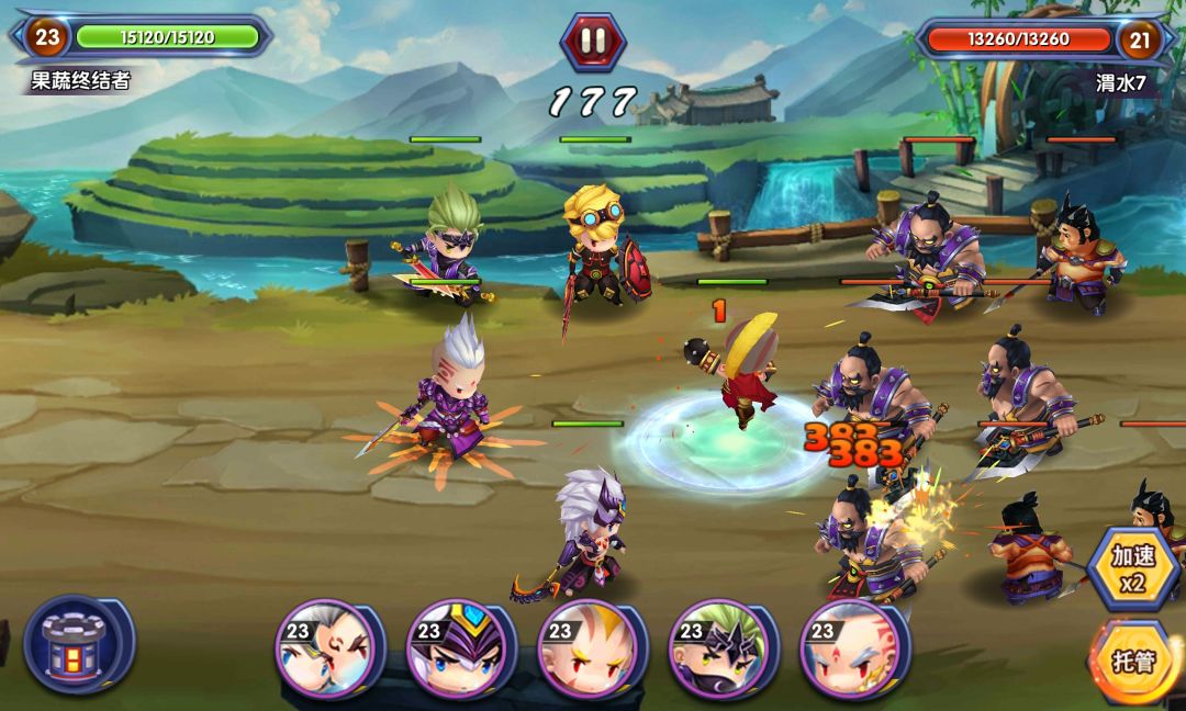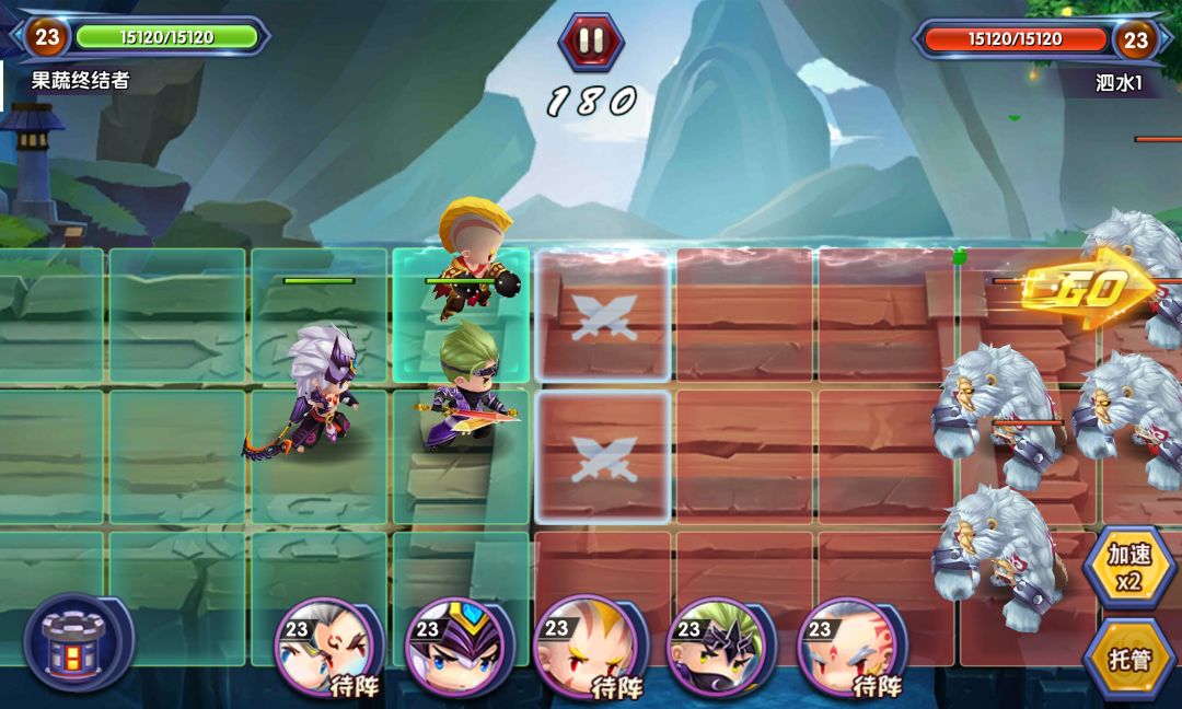 战斗系统,也是需要费脑子的,自由度很高,可以选择手动释放英雄技能也可以自动。一共三排(横着的,我成为排),上阵5个英雄,根据技能不同和攻击范围不同随意搭配。