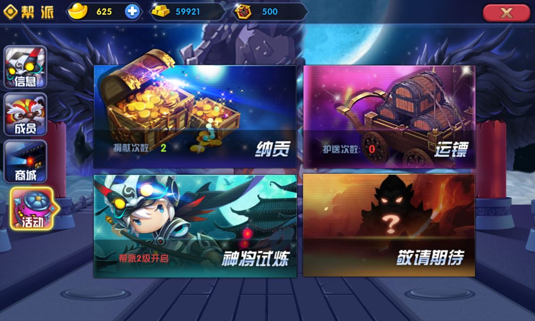 9、“帮派”活动多多,提供帮派商店的货币,而帮派商店也不吝啬,可以购买到很多珍贵材料;