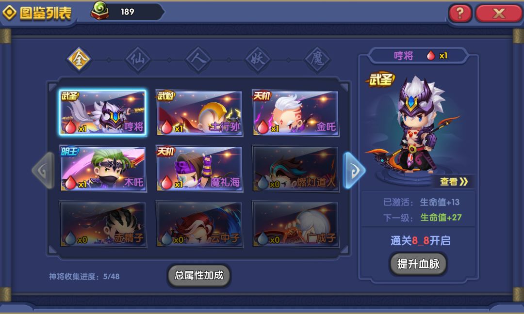 11、“图鉴”系统,让每一个神仙不在孤单,每激活一个神仙,都有属性的增加,每一个神仙都有用!
