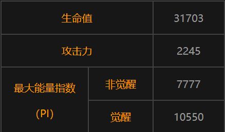数值基于4星、等阶 5、50 级、觉醒等级 99