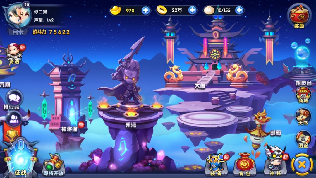 首先跟所有卡牌类网友一样有教程的时候跟着教程走,上阵3个英雄后你会很快遇到一个坎 这个时候你就需要把背包里的装备全带上并且强化了 估计能到十连抽了和上五个将。 然后坎又来了 初始武将是主角,哼将,土行孙个木吒。 人品好的十连抽能得到两个武将一般都一个。培养武将个人建议先全部升到两星。然后升星优先级为主角>土行孙>木吒=哼将=? 这个?基本就是那几个紫将 差别不大。然后能把精英副本能过一个刷一个然后扫荡。正好是五次五个将装备全能锻造一次。 材料是不够的需要扫荡去刷。这套装备就能把所有的小包子全吃掉了。下面图就是我第一天没月卡是的战力 正好卡第六章需要21级的本。
