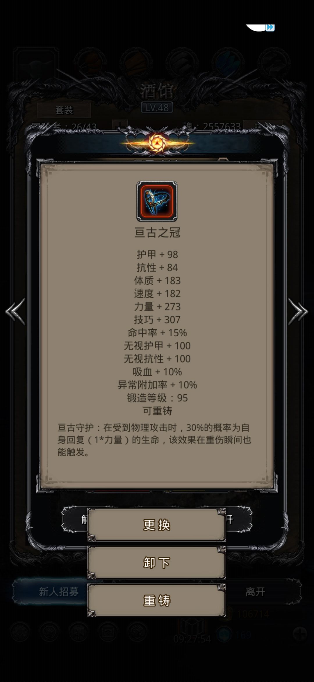 由于火法带的两个饰品都是不加命中的,所以我衣服选择的是魔技符文甲而不是纯魔的,否则命中很难堆