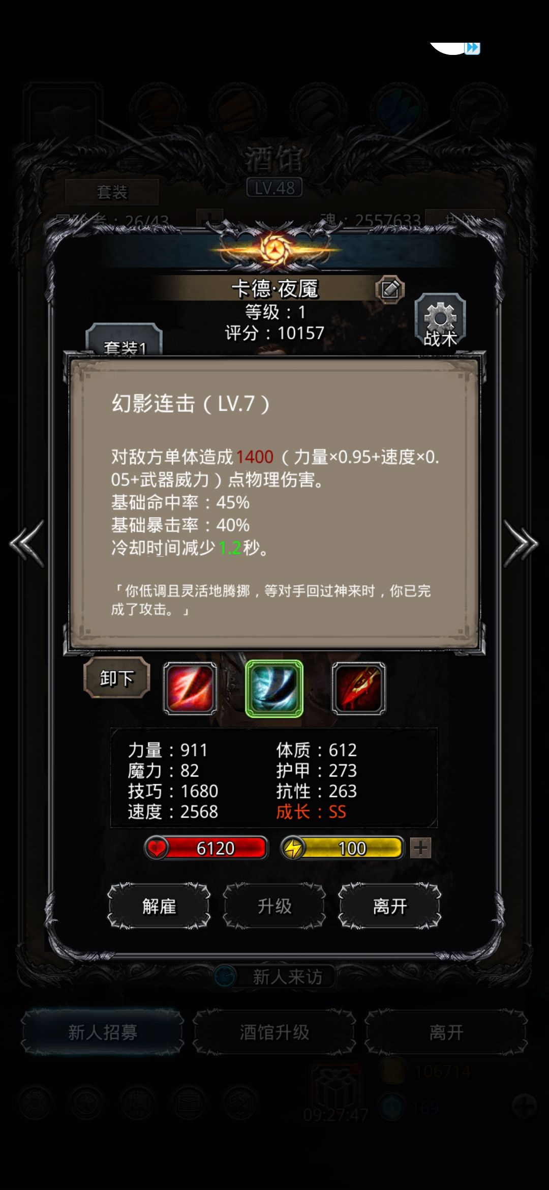 剑豪由于技能cd长所以力速收益不高,在装备和战利品的选择上我们应该尽可能的选择高力的装备来提高剑豪面板以及特效伤害