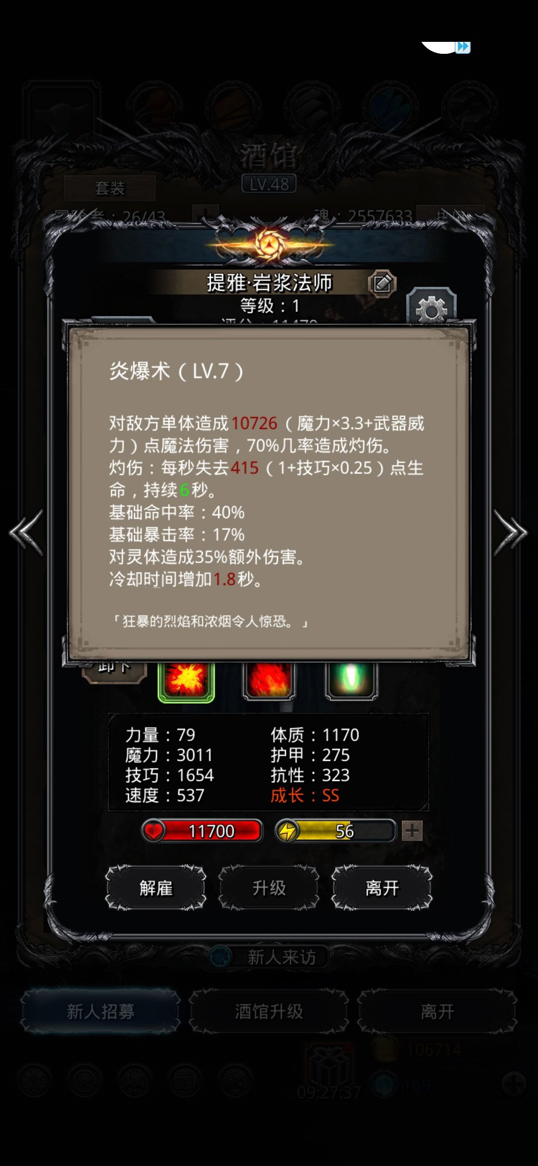 而且换光匕之前我总体伤害有点不够,所以为了提高输出上限,我没有把火法堆到满命而是选择把面板伤害尽可能的堆高