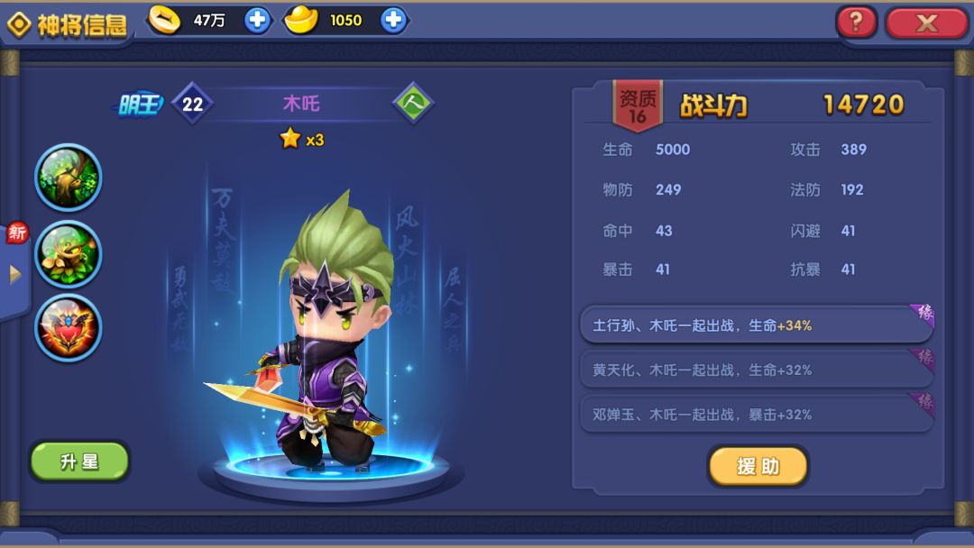 .游戏开始送的两个角色土行孙和木吒是很不错的肉和治疗,可以培养起来。