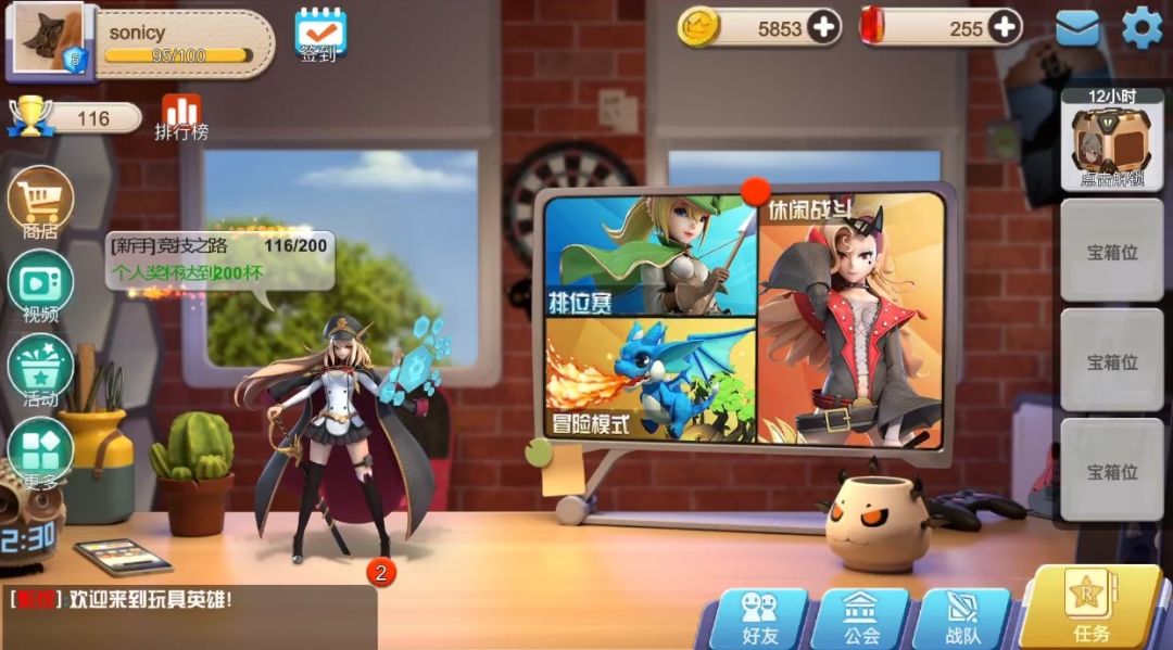全新的开箱动画相比之前添加了更多的文字性提示,开出新卡的时候可以快速方便地了解新卡的技能和特点。另外增添了光环特效,当看到橙光一闪的时候嘿嘿嘿欧洲人就是你啦!宝箱的外观设计也比之前好看了许多,箱子上的小人相当萌~