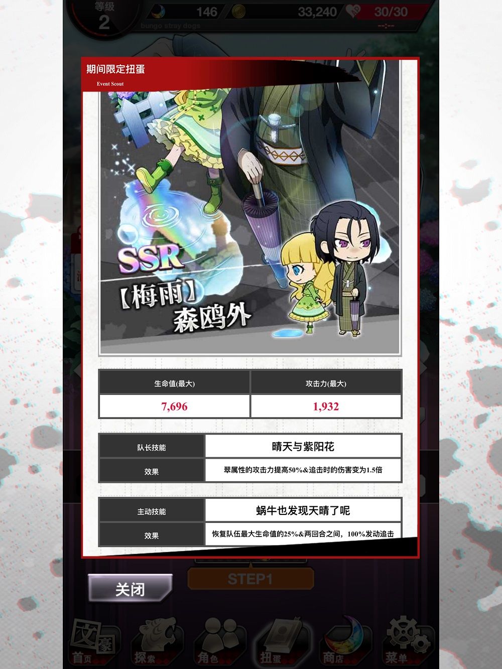而如果你有的是【罗生门·月下兽】芥川龙之介或者是【梅雨】森鸥外这样的卡,那么我建议是有光暗属性就练纯光或者纯暗,因为光暗属性至少打谁都不会吃亏。但是像【梅雨】森鸥外这种只加翠属性攻击力的,可以练,但是不适合新手开荒练,因为纯的苍翠红属性碰到克制的爽是爽,遇到被克制的就显得泛用性不足了。