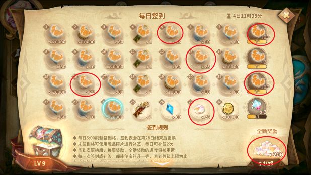 9)累计签到每20天:50(每月可得50~100)