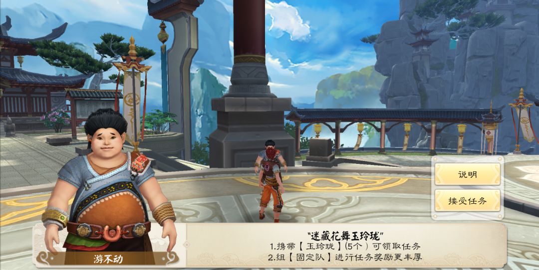 对话后发现需要带上5个玉玲珑才能开启一次迷藏任务。(玉玲珑可以通过章节、领悟、装备副本获取)