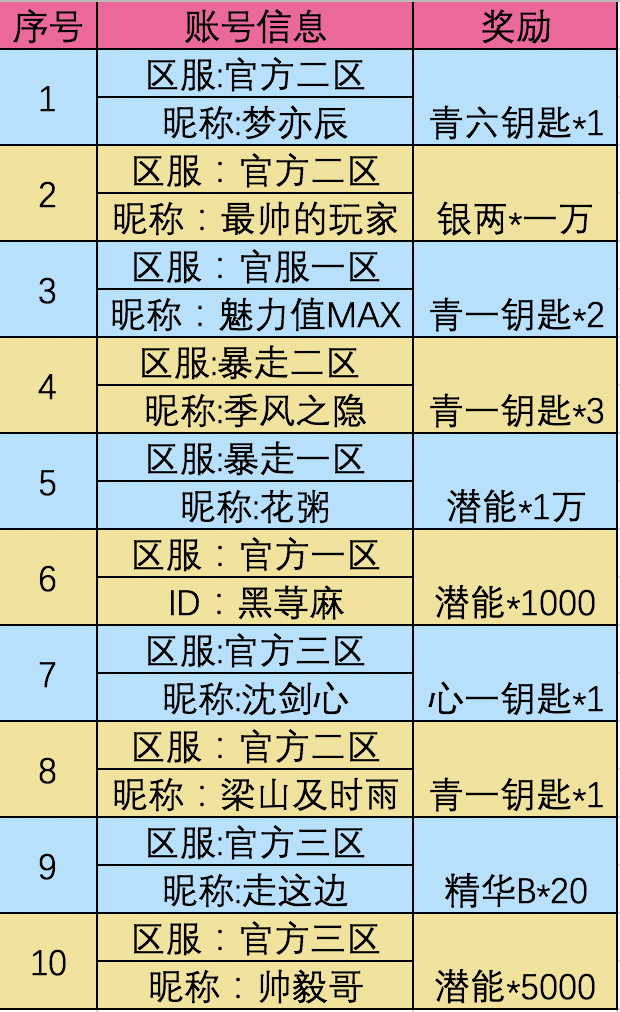 🎈恭喜以下幸运大侠🎈