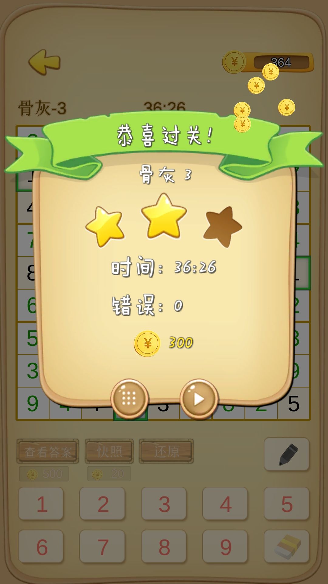 脑壳疼,前面两关都是解到最后发现有几个数字错了,不想重来只好花金币跳过,这关终于自己解出来了,(建议官方出一个局内检查自己有没有出错的功能,可以一局限用一次,要使用得花金币;如果使用了这个技能相应地扣一颗星)