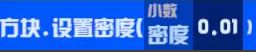,默认建筑和零件的密度都是1,这里将方块改得非常轻,使战车可以推动它,添加这行代码的方式是:从上方拖动“机械”按钮到下方,选择 方块/方块_1/设置密度,然后点击密度后面的数字,输入新的数字0.01即可。设置好后关闭当前界面。