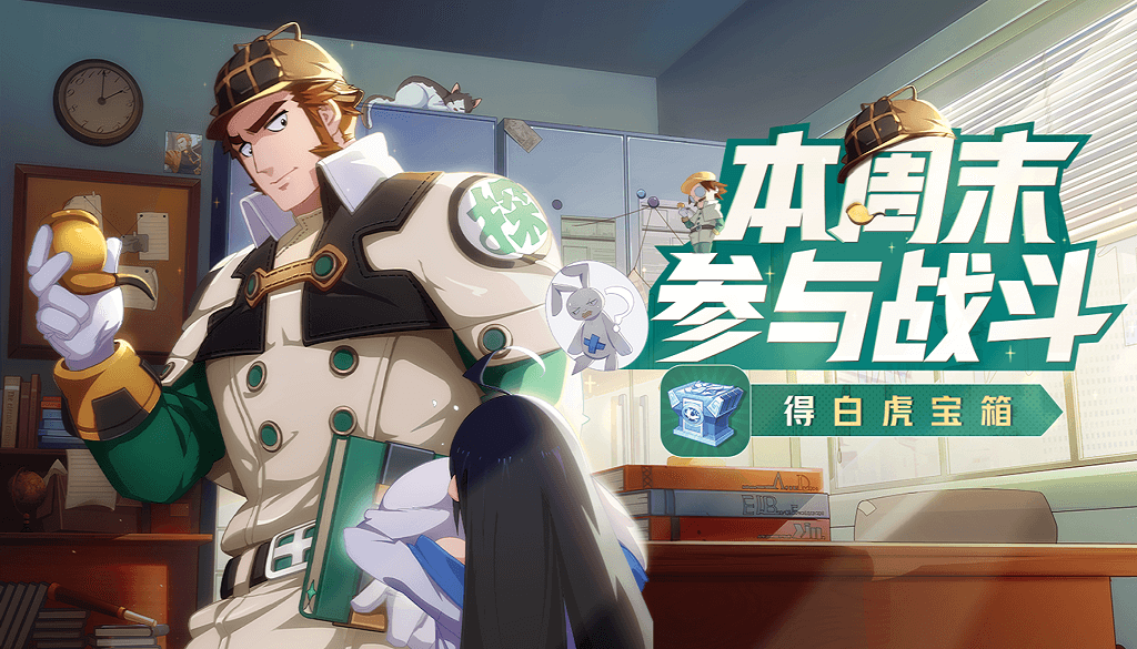 本周末每日参与战斗,必得白虎宝箱,打开后随机获得下列奖励一种:虎力3日体验卡,虎尔摩斯3日体验卡,金砖10/5,拍手器10/5。每日掉落上限为3场。