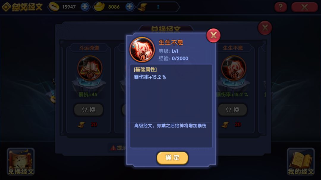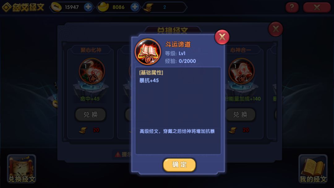 第五个参悟10000铜钱,概率出紫色经文,小概率橙色经文