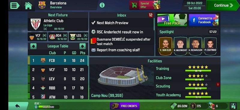 说到2020版本中最大的改变就不得不说到球队设施界面的改变,如下图。