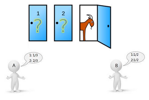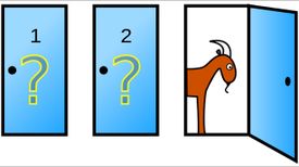 “假设你正在参加一个游戏节目,你被要求在三扇门中选择一扇:其中一扇后面有一辆车;其余两扇后面则是山羊。你选择了一道门,假设是一号门,然后知道门后面有什么的主持人,开启了另一扇后面有山羊的门,假设是三号门。他然后问你:“你想选择二号门吗?”转换你的选择对你来说是一种优势吗?”