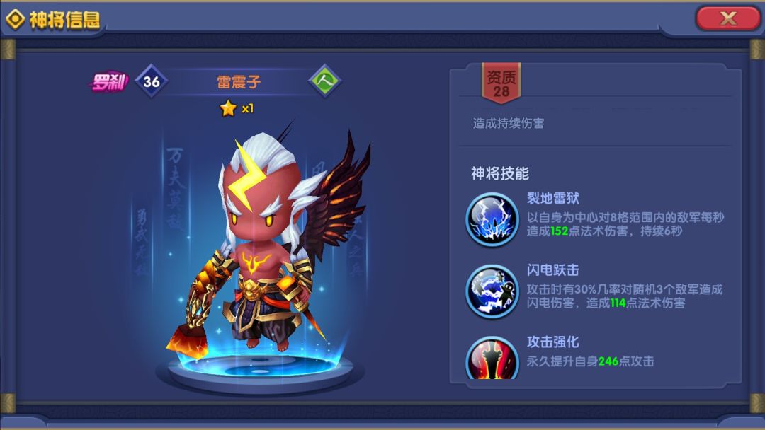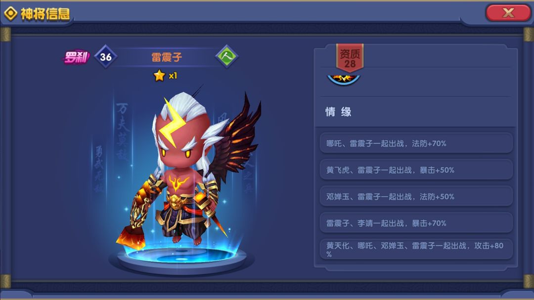 但是说到最特别是他们的2技都是30%触发攻击效果, 哪咤就能对单个人作出4次攻击,而雷震子就是对随机3人作出1次攻击,这很爽爽爽, 雷震子作为远程输出可以一直可以在后边输出。