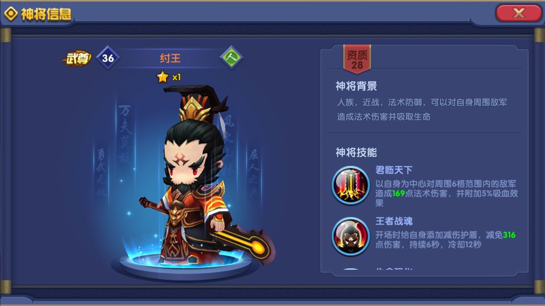 说到技能, 纣王2技能固定减伤6秒,12秒CD,是个很不错的坦克技能。