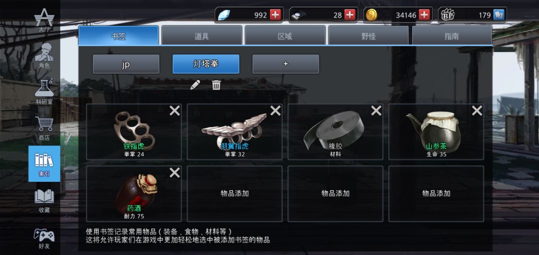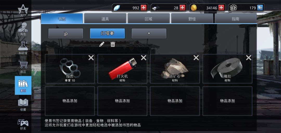 从灯塔开,要拿的东西有:指虎,打火机,橡胶,铁矿石。指虎和铁矿石做铁指虎,铁矿石可以丢了。打火机烧4个沸水,留一个打火机和一瓶水。