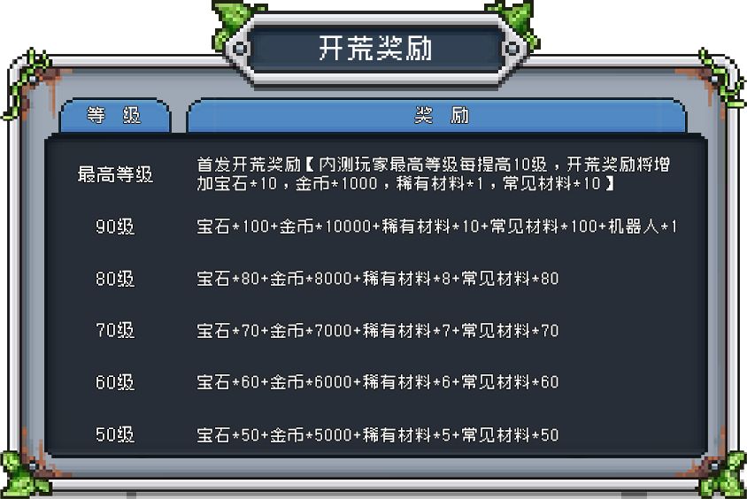 我们将以内测结束时玩家达到的最高等级为标准,在首发时为全服玩家发送额外奖励,详细奖励将如下图所示: