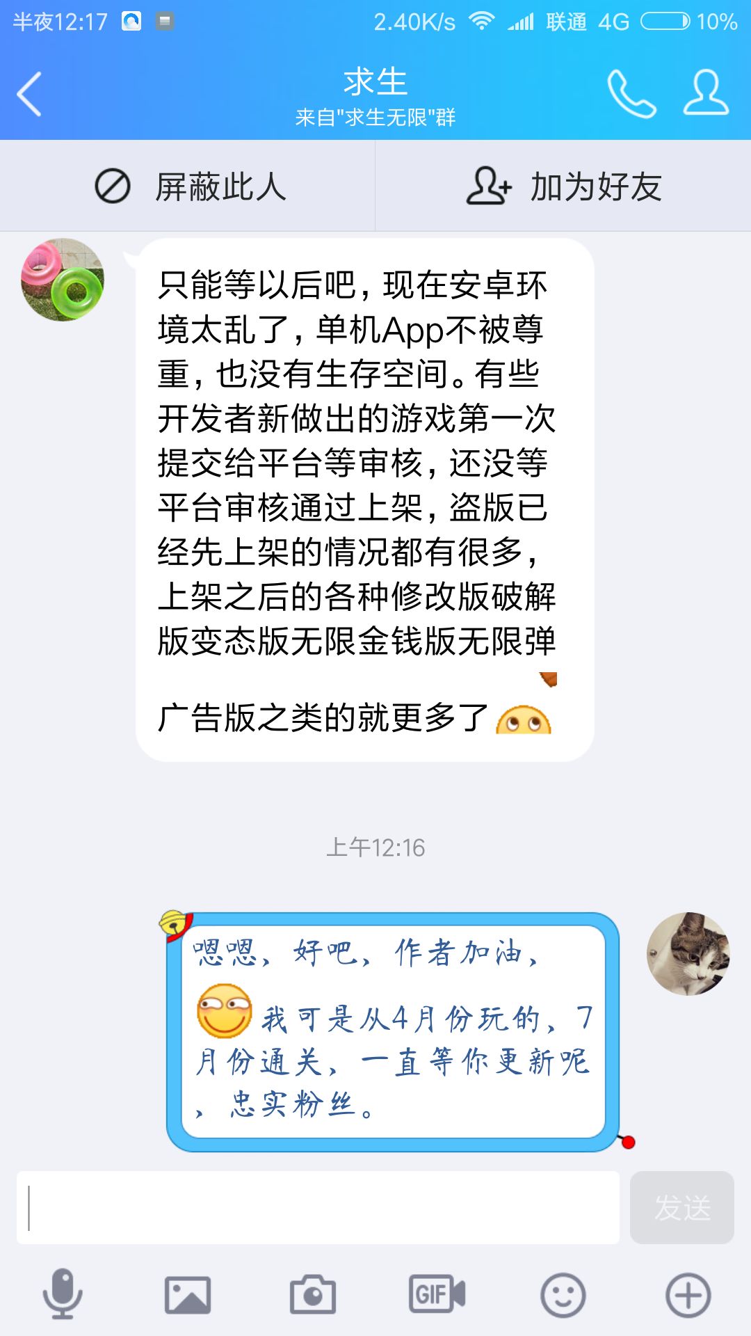 了,问了作者一下什么时候有安卓的消息〈作者居然回我了〉