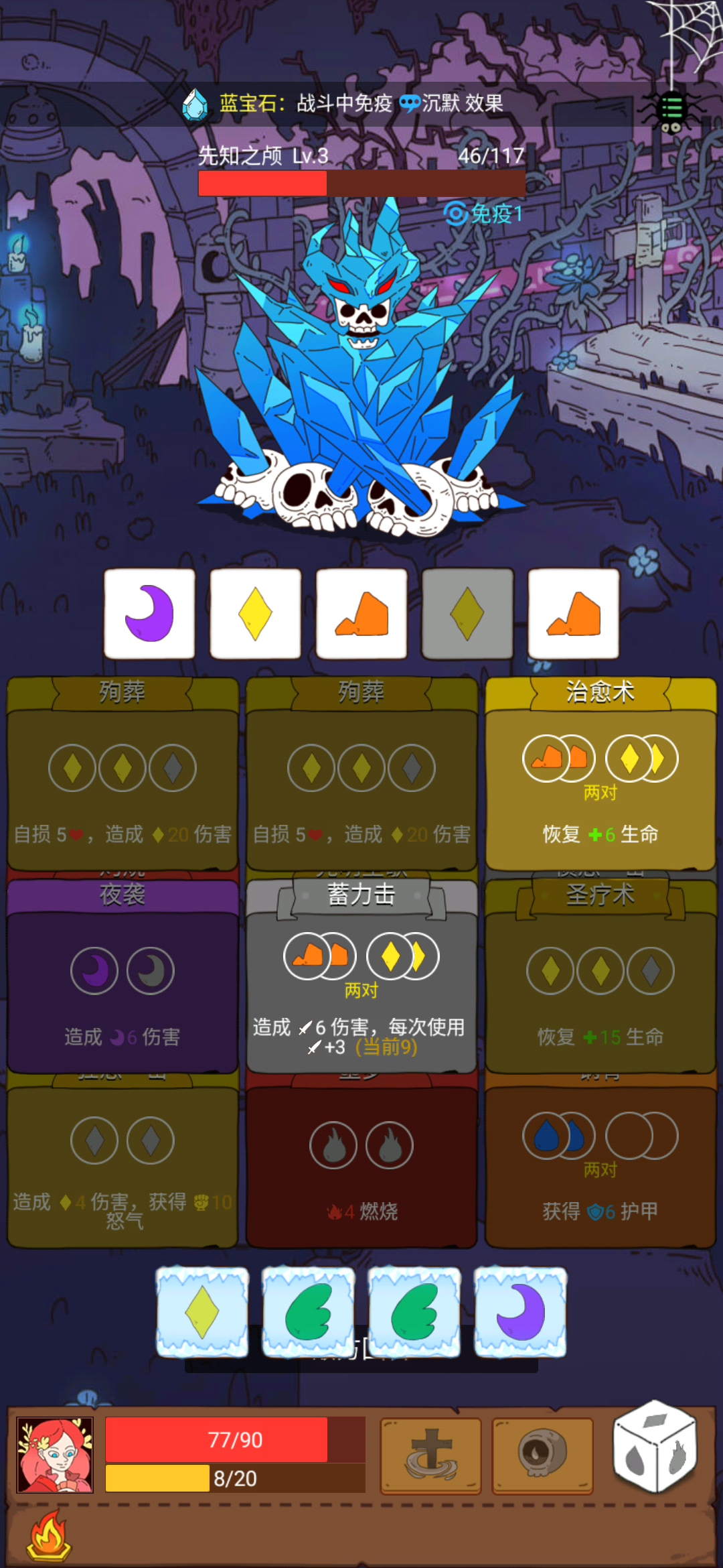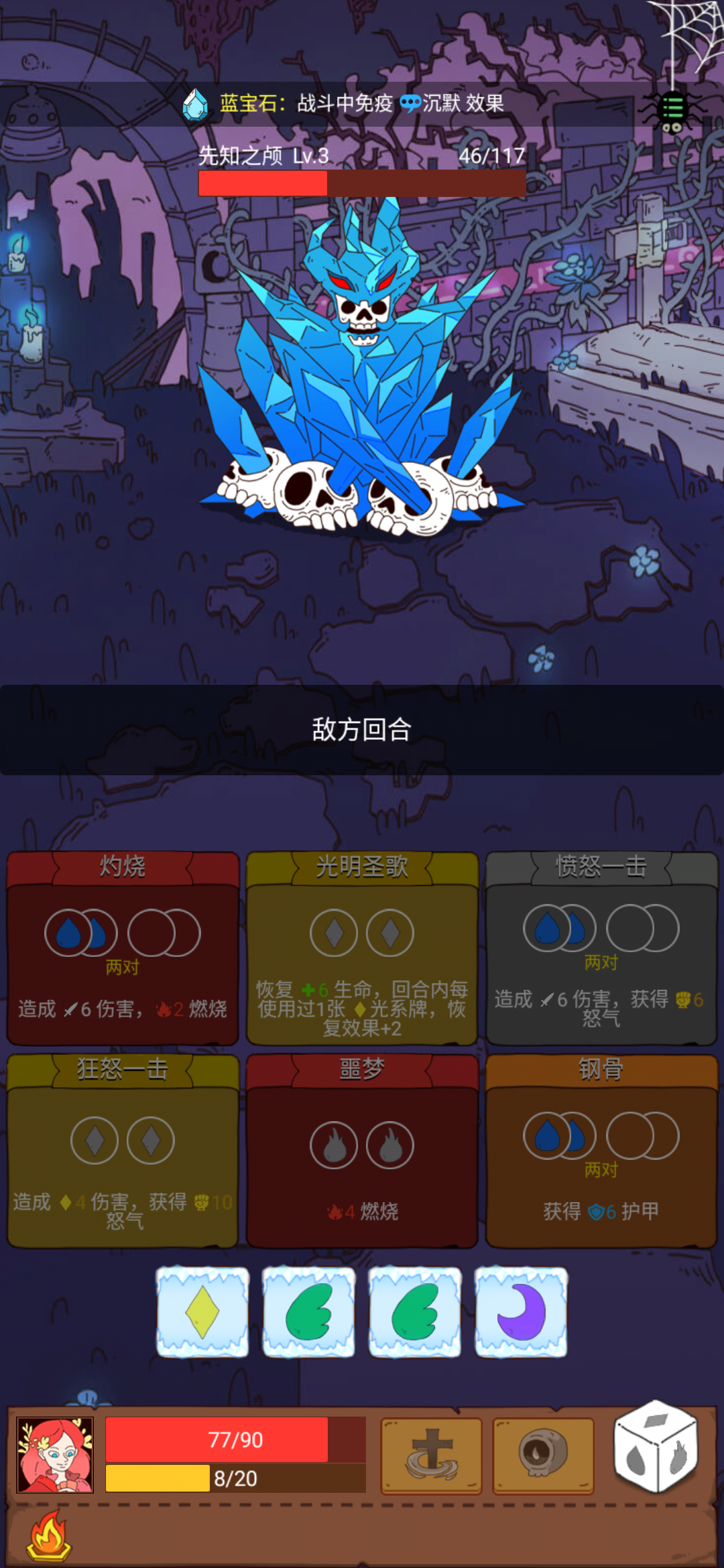 上一回合中了个全骰子冻结的debuff,然后我点加骰子,突然就跳过了我的回合,接着我打出3张牌后发现上一回合的牌还在,但是打不出去。