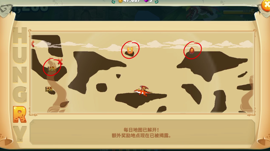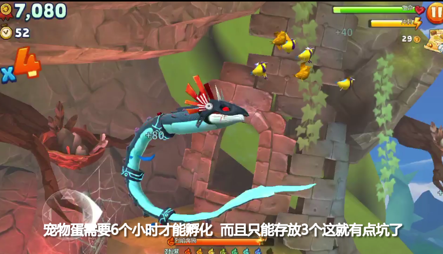 可以看到在这个地图中是有一些宝箱跟宠物蛋的,还有一些字母。宝箱就是金币之类的奖励啦,宠物蛋呢可以孵化出各种宠物来帮忙助战,有强化属性的,帮助攻击的,减少伤害的等等。宠物蛋需要6个小时才能孵化,而且只能存放3个这就有点坑了。凑齐那些字母就会进入暴走状态,可以直接吃掉超大的怪兽哦 ~积分多多,经验多多哦 ~