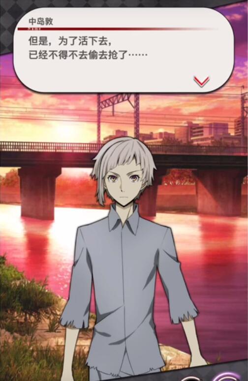 作为一款漫改游手游,除了玩法之外最关键的就是与原著的契合度了,得益于角川的正版授权《文豪迷犬怪奇谭》在剧情方面可谓是做到了极致还原,只要打过了新手教程就可以在探索模式中体验到剧情模式,在探索模式里我们就可以从0开始再次体验到与动漫一模一样的剧情,值得一提的是就连游戏中剧情的插画也全都是《文豪野犬》动画中的画面,再配上和旁白的文字和精彩的战斗体验,所给人带来的感觉完全不比看动漫差,甚至还有一种身临其境的感觉。