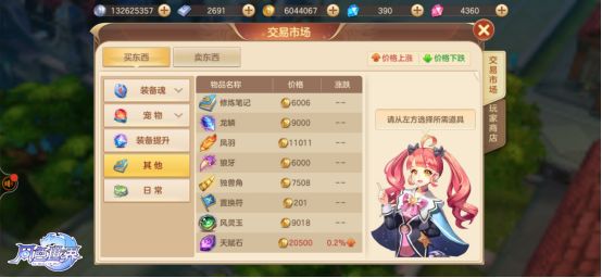 在《风色世界》中,金币可以直购很多材料,譬如用于洗练装备的装备魂、用于强化装备的地灵石和天灵石;宠物相关的宠物技能书、宠物经验书,以及修炼笔记、四宝等珍贵消耗品和材料等等。具体的道具列表大家可以在交易市场中一看究竟~