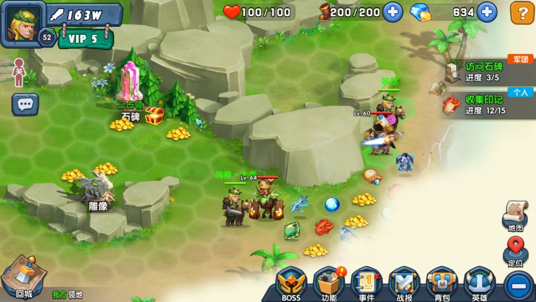 ,这个是根据你自己的等级和会员等级来收货的。当你等级到了挑战下一个副本时不要犹豫马上打,这个副本很容易过,虽然过一关每小时只加60经验,但是一天算下来也不错,在加上加速挂机次数。加速挂机会员等级越高次数越多和祭坛获取体力一样道理,提醒大家一点的就是,当你等级到了打下一个副本要先打在用加速,如果先加速了也是种损失啊。 6.军团领地,这里会员一些野怪打自己能打的。打过了也会有经验一个怪120经验还有些别的资源,积少成多的道理嘛,有时候还会装备哟,