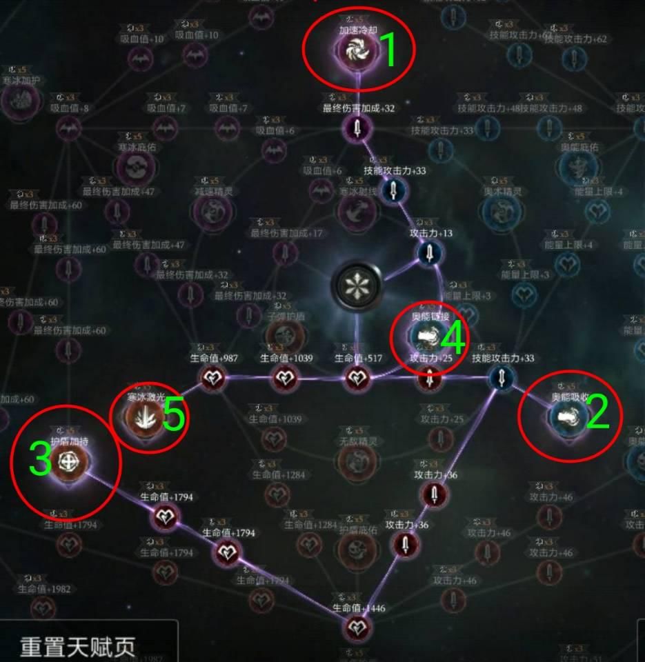 总结:以上用到的天赋点有64点,超过了30级时最高天赋点60点。所以建议前面点出天赋4“奥能链接”之后,在后面选择重置,不点天赋4而是点出天赋5。
