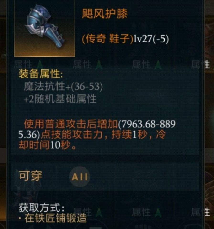 首先是这个27级鞋子“飓风护膝”,普攻之后的一秒内能增加8000左右的技能攻击力,这在前期是相当大的提升,而且冷却仅10秒,只要抓住时机在普攻后使用高比率技能就能造成非常大的伤害。【图9】