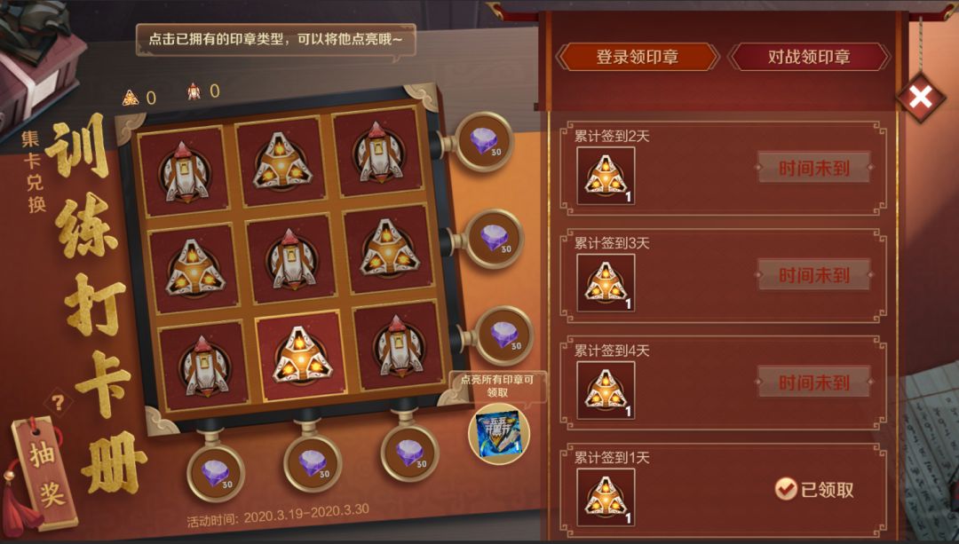 活动期间,通过登录游戏和参与对局收集活动印章,点亮打卡册,即可获得永久五五特效奖励!