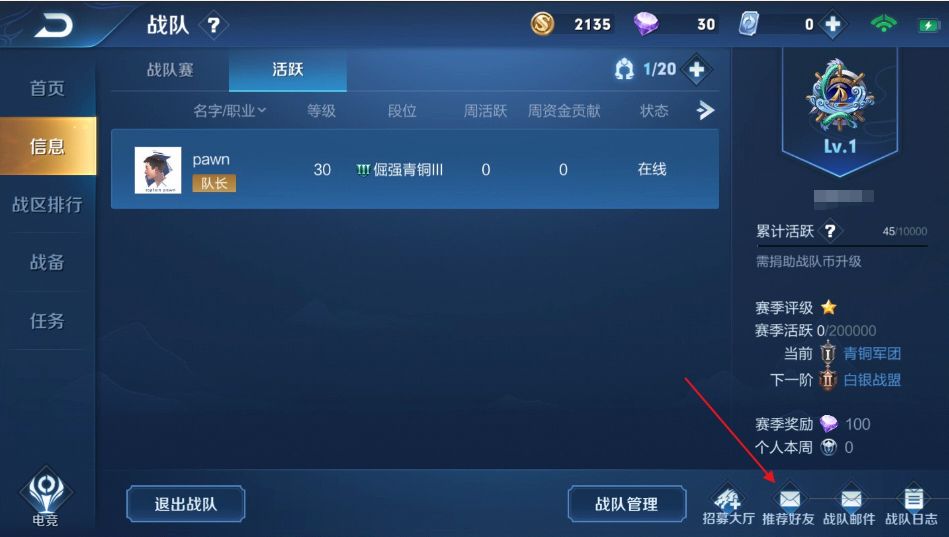 我们在战队-信息界面添加了推荐功能,希望能够帮助大家更方便的推荐自己的战队!