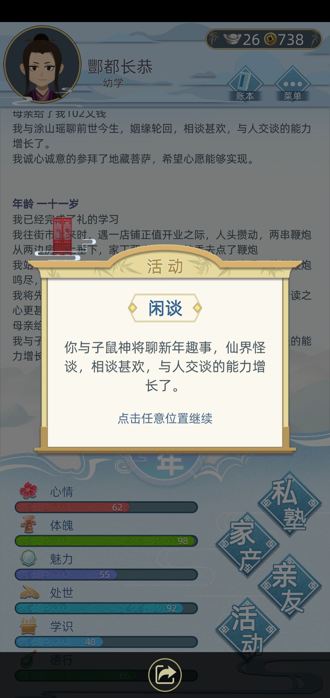 当时已经娶妻,如果没娶妻可能会触发说媒之类的特殊事件?