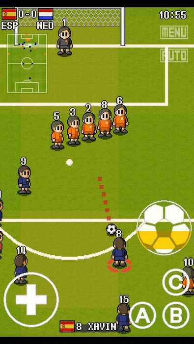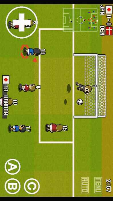 这款只有2.65M的足球游戏有喝何德何能让我推荐它呢?游戏规则基本与PES无异,但从画风和横竖屏切换来看,游戏质量还不蛮不错的。打开游戏,简洁的界面我喜欢=v=,要是你呆上一阵子,游戏界面就会出现一场游戏内比赛,让我想起了小时候玩的街机(怀念啊)。