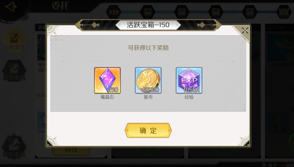 这个游戏的经验产出只有几个地方,大头来自日常和任务,日常宝箱的经验跟着主角的等级走,所以日常活跃宝箱一定要开满(等级上去后,每天的活跃会溢出100左右,所以还是很容易做的)。
